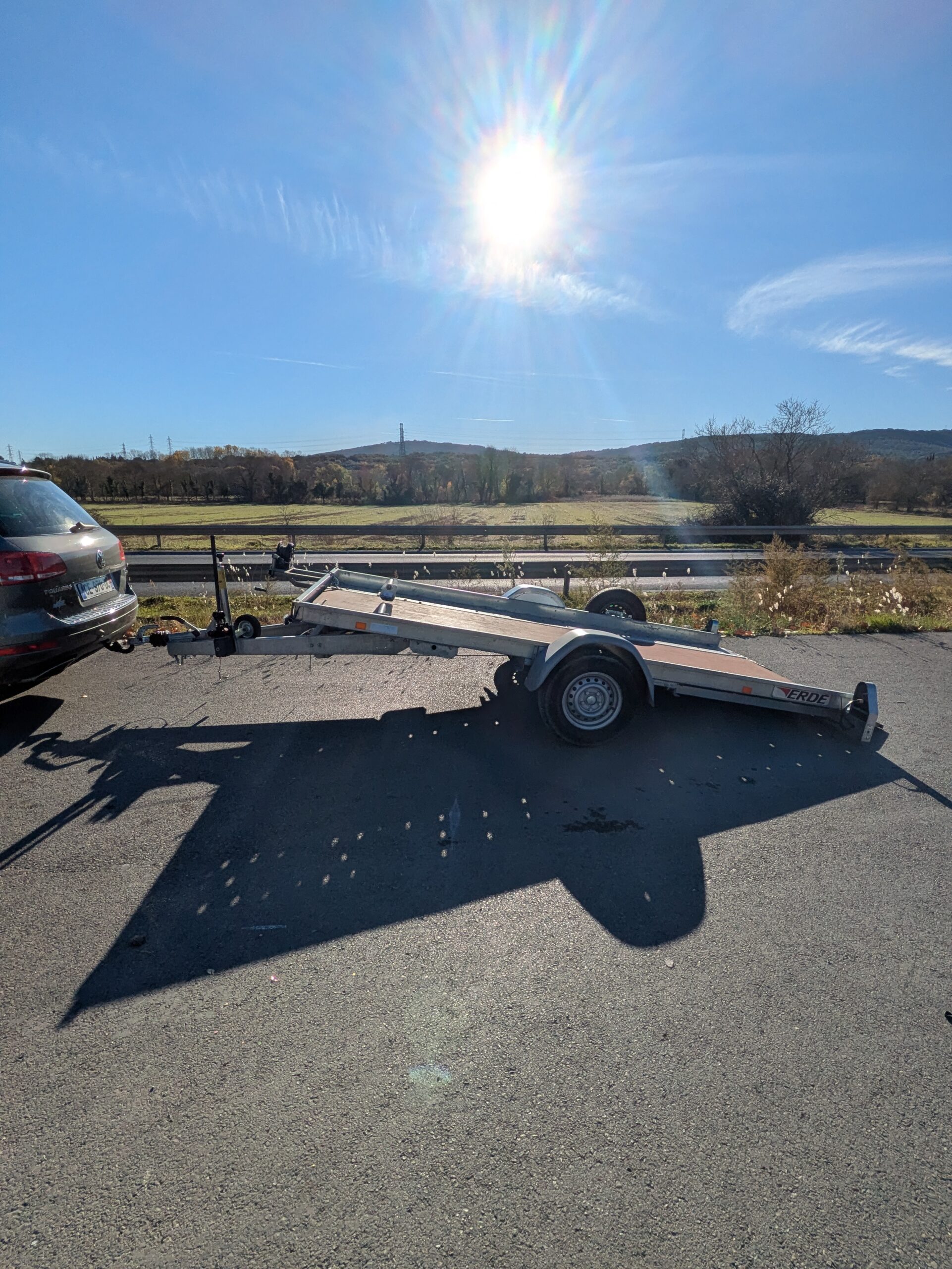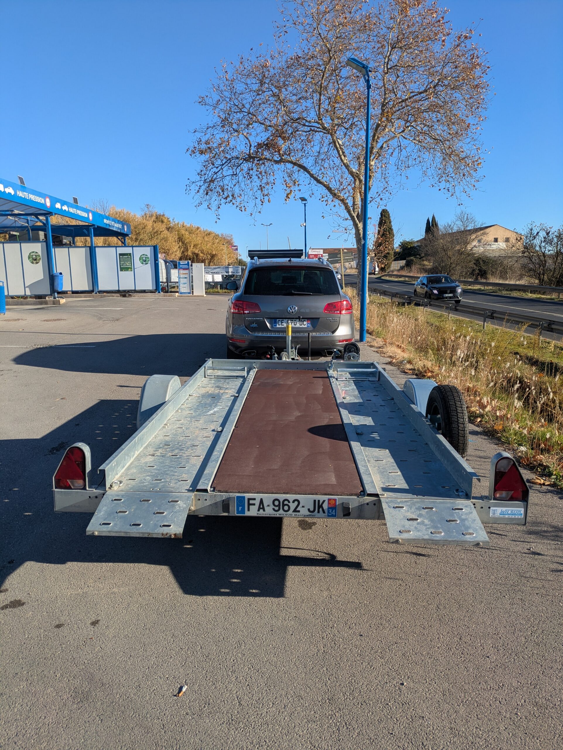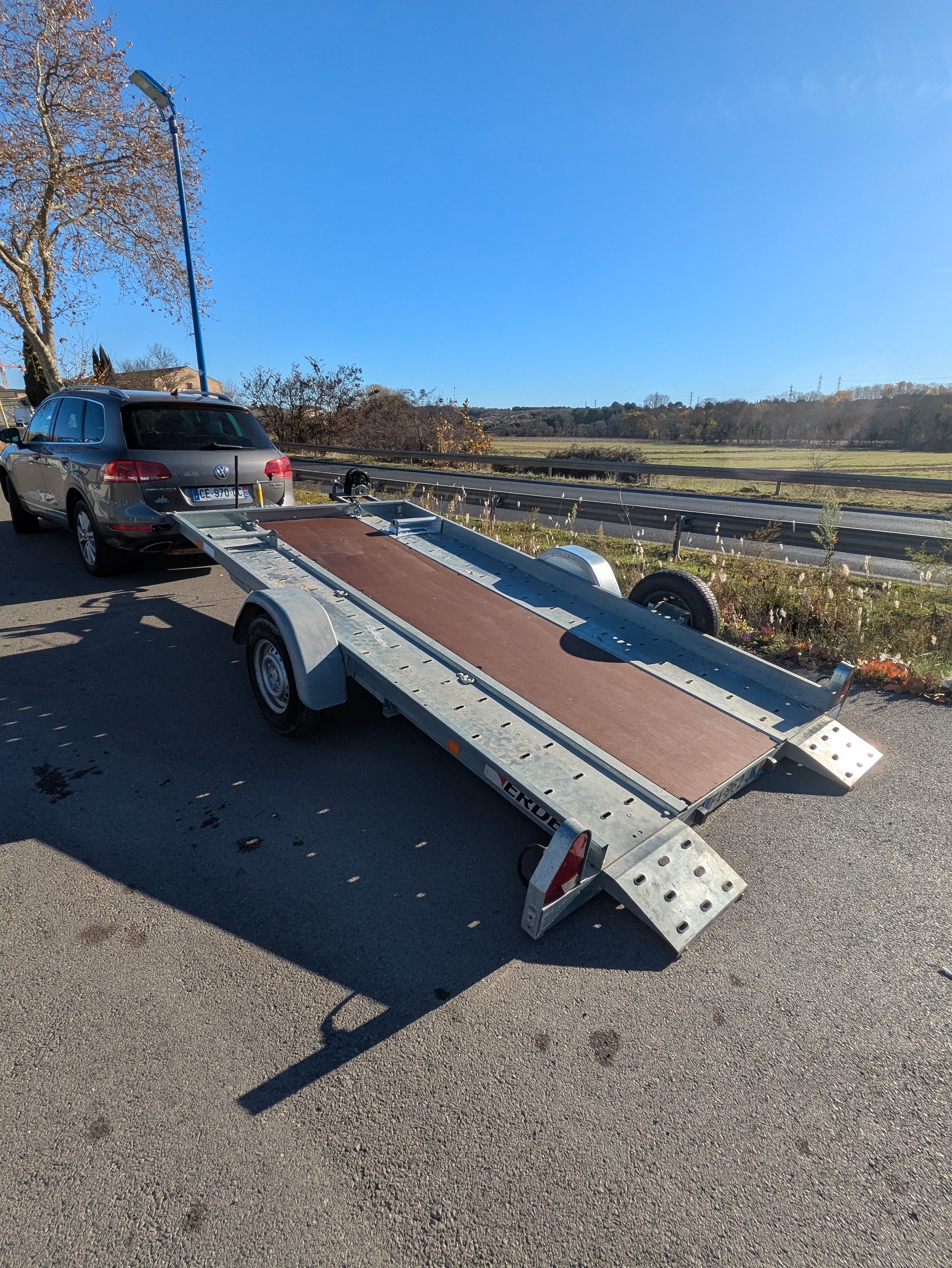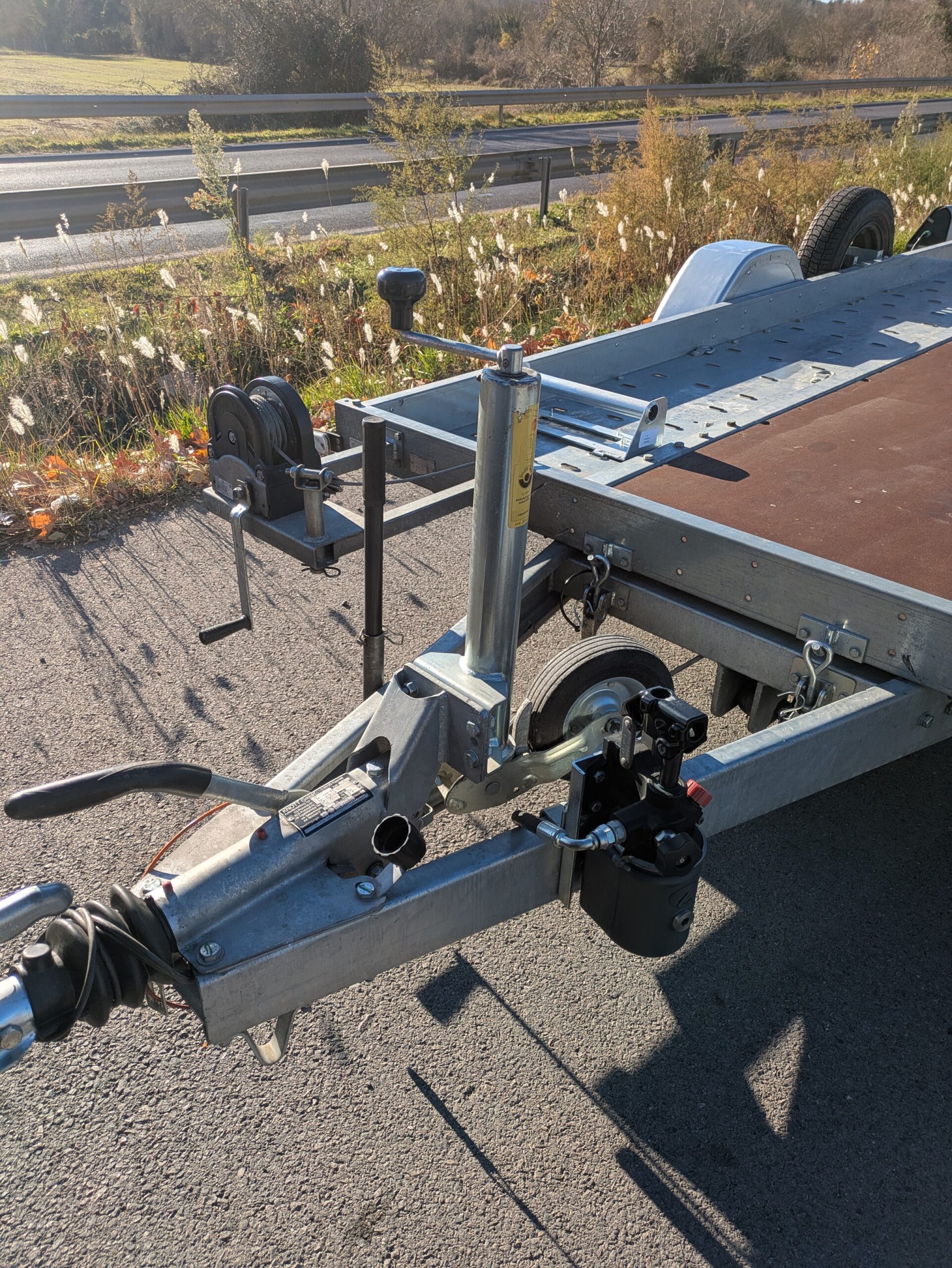 Remorque porte voiture simple essieu avec basculement hydraulique + cale de roues + treuil + roue de secours + plancher intégral !!!!